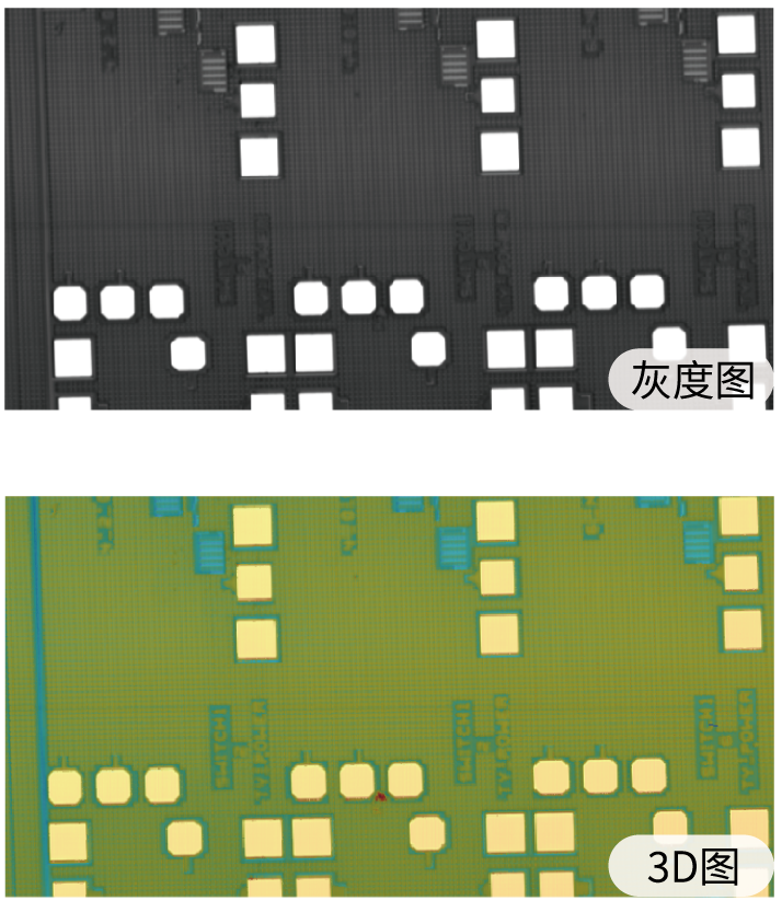 (2)金线表面存在高反光干扰,且键合后焊盘表面可能存在残胶等异物,传统光学传感器对这类材质难以准确成像。